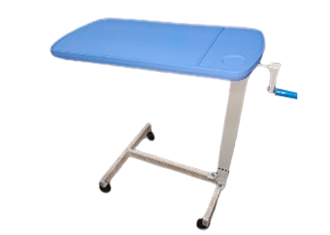 This gear-handle adjustable overbed table features a sturdy frame with an ABS top and a convenient handle, providing a smooth, hygienic, and easy-to-clean surface for meals, medical equipment, or personal items. The gear handle mechanism allows precise and effortless height adjustment, enabling patients to access the table comfortably while sitting or lying in bed. Its robust ABS top ensures resistance to scratches, stains, and daily wear, making it highly durable.